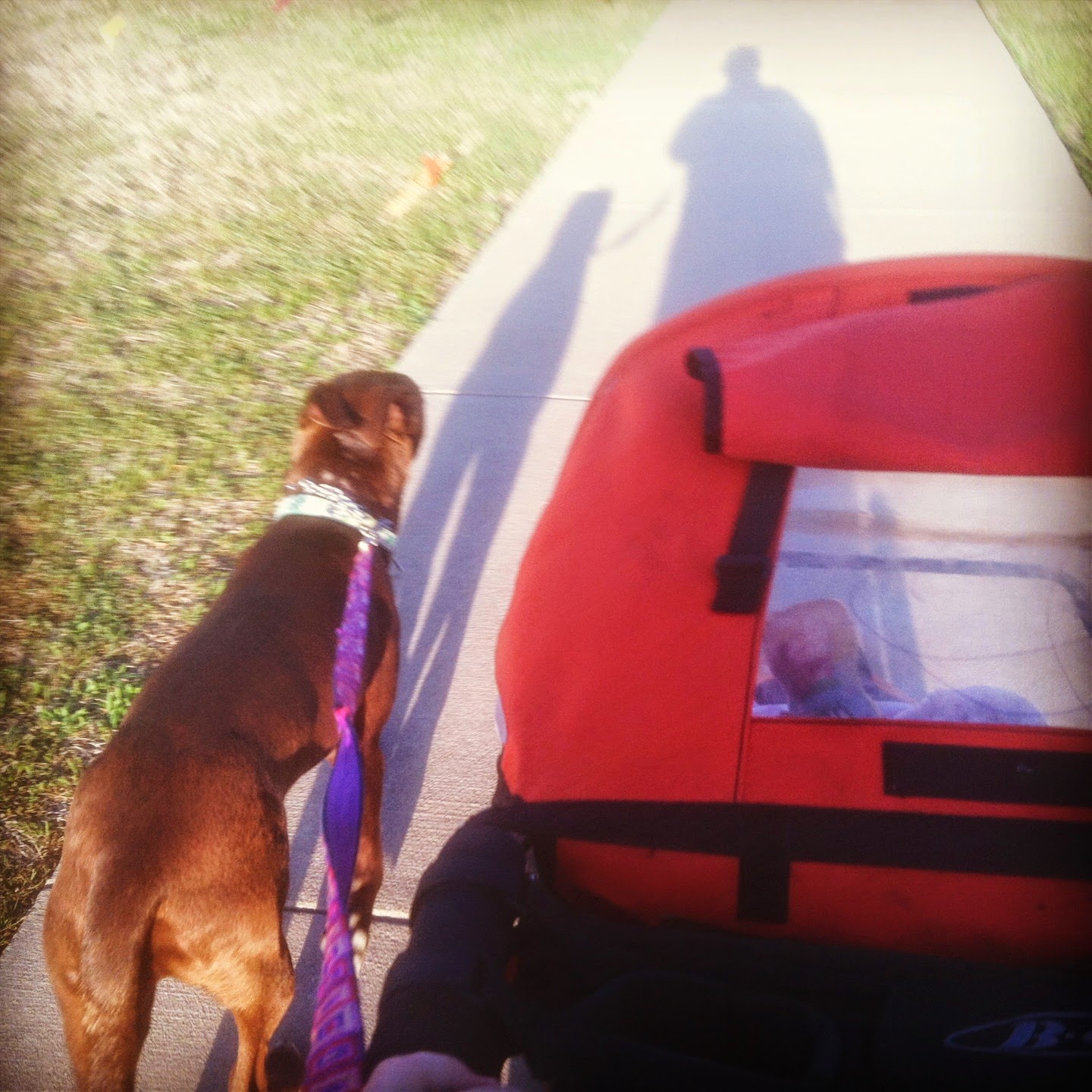 Never having gone to an obedience class or really spent much time on a leash, Luke knew to heel properly during a run. Even more cool, Luke knew that he needed to heel to the stroller- that his job would be to keep his nose even with the Bob. He also never tired.